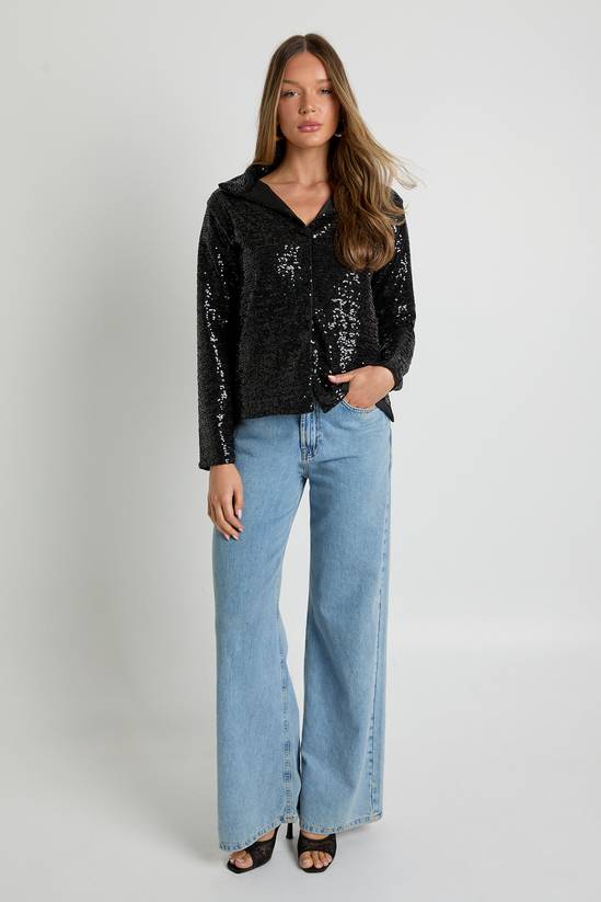 Make a dazzling entrance in this show-stopping Sequin Oversized Button Through Shirt from Boohoo. Perfect for nights out, this eye-catching piece combines comfort with high-impact style. The relaxed fit offers a contemporary twist on evening wear, whilst the button-through design provides styling versatility. Pair with light wash denim jeans for a casual-glam contrast as shown, or style with faux leather trousers and heels to dial up the drama for club nights. The classic collar adds a sophisticated touch that balances the bold sequin texture. For cooler evenings, layer over a simple cami and wear open as a lightweight jacket alternative. This versatile statement piece transitions effortlessly from drinks with the girls to dancing till dawn, ensuring you stand out for all the right reasons whilst maintaining that effortless Boohoo vibe.